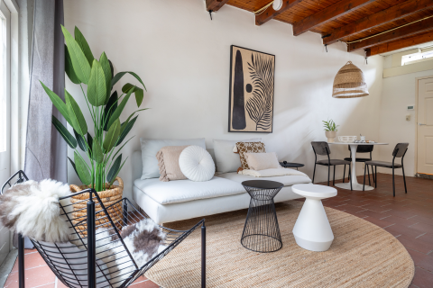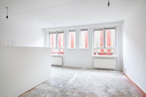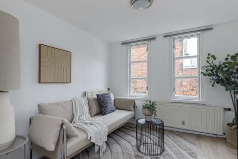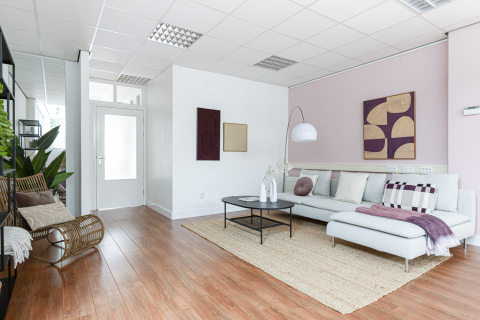 *Strak gestuukte wanden en plafond met inbouwspots op de begane grond. Op de 1e verdieping zijn de wanden afgewerkt met spachtelputz.